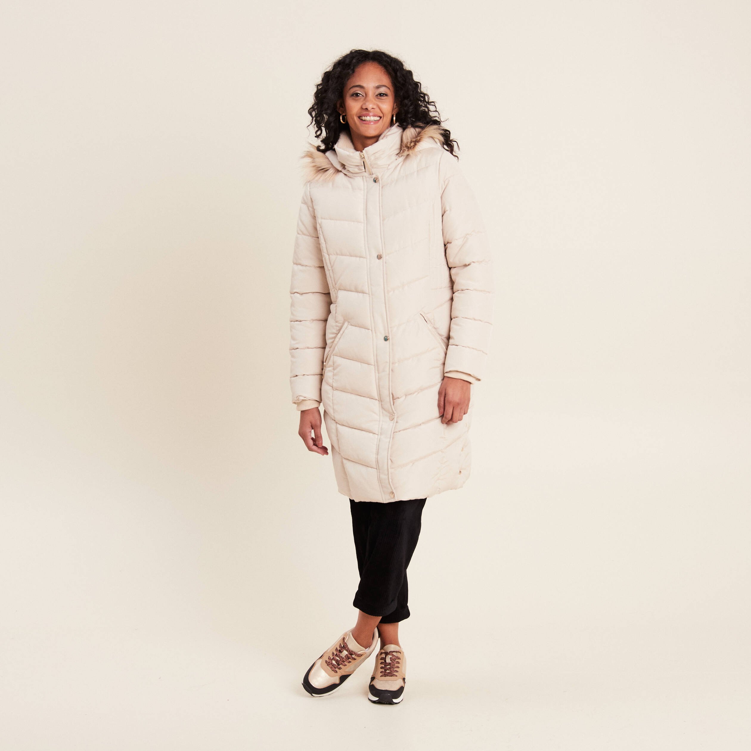 Doudoune déperlante longue à capuche beige femme | Bréal