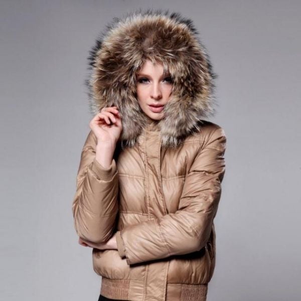 Doudoune courte à Capuche pour Femme Lignée Fourrure