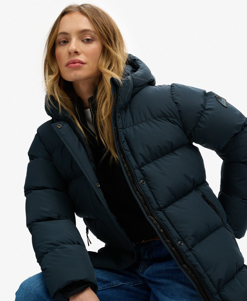 Doudoune mi longue à capuche Sportsbleu marine myrtille pour Femme | Superdry FR