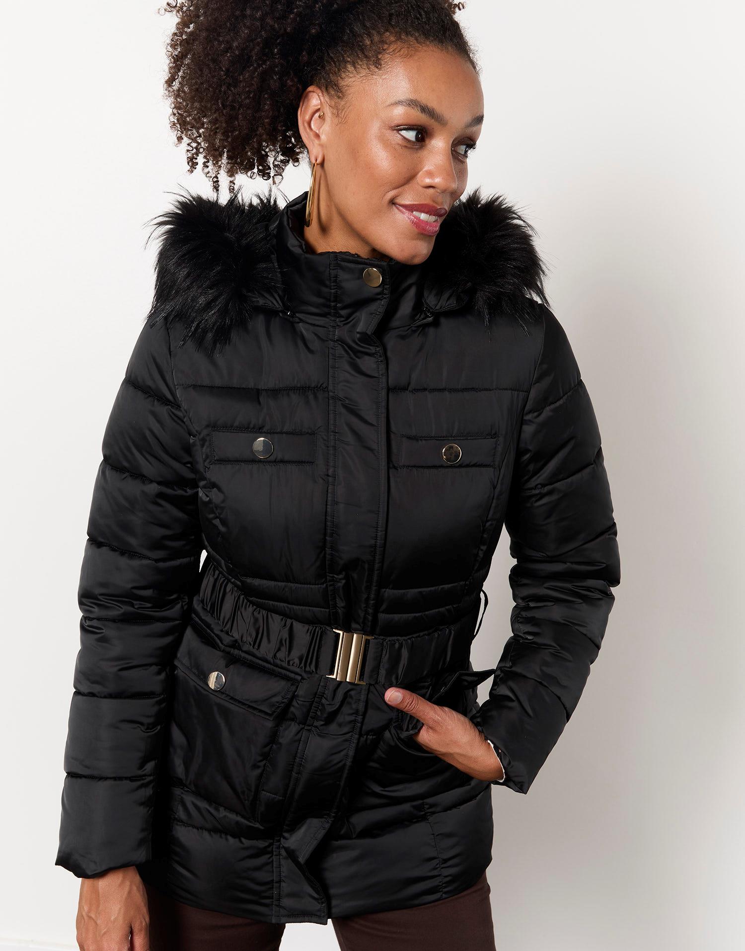 Doudoune mi longue unie noir Femme | RIU PARIS