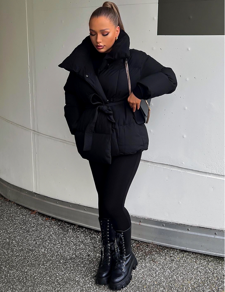 Doudoune mi longue matelassée avec ceinture à nouer