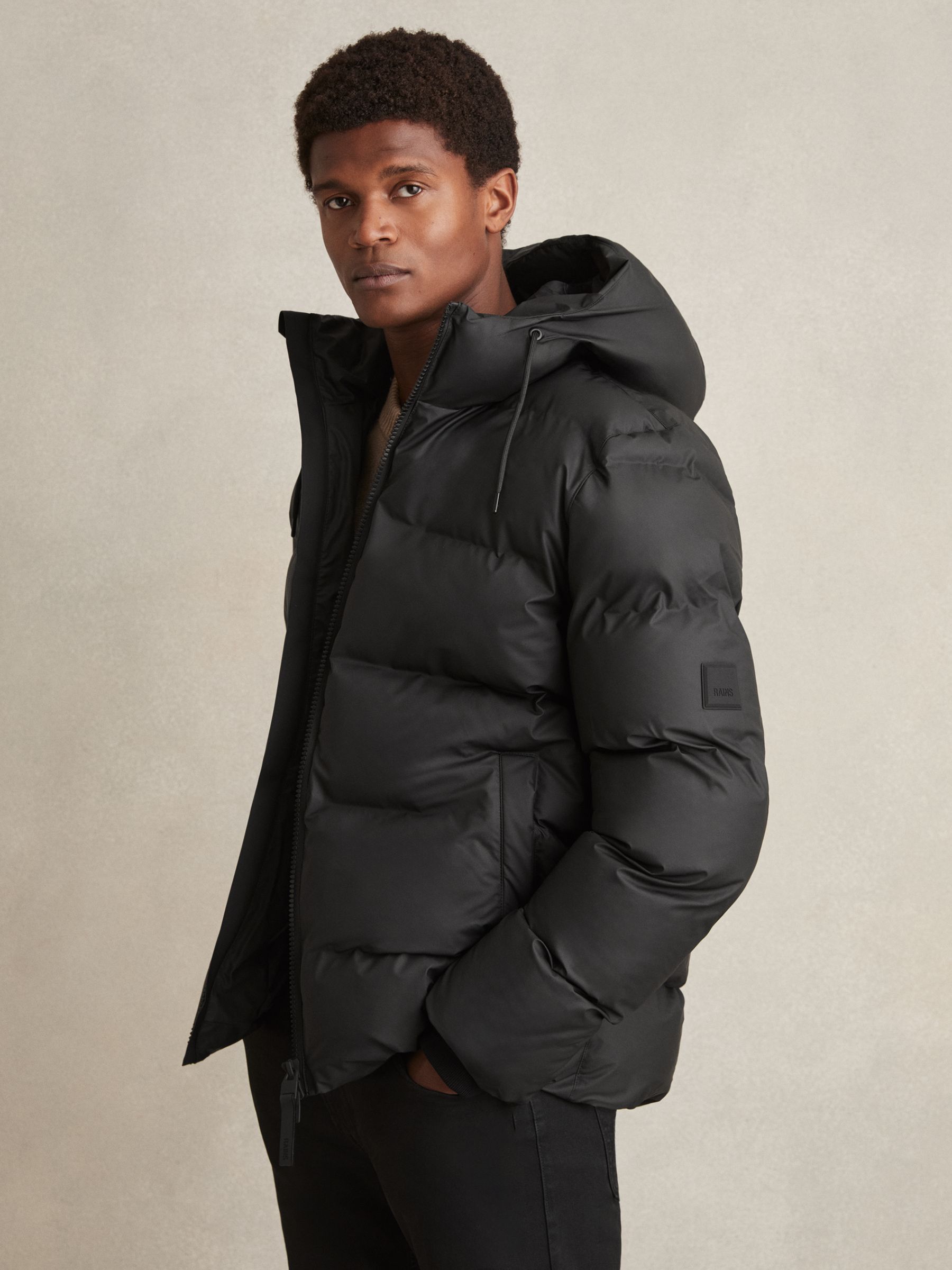 Reiss Rains Alta Short Puffer Jacket in Black | REISS