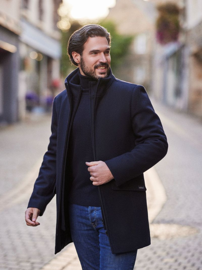 CALAIS veste homme 3/4 en laine imperméable Couleur Marine Taille 42