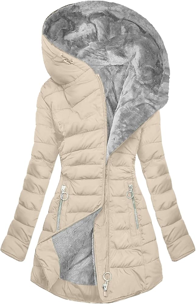 Manteau Femme Doudoune Fourrure avec Capuche Hiver Chaud éPais Long Elegant Slim Fit Manche Longues Mode Pas Cher Veste en Jean Fille Parka Outercoat …